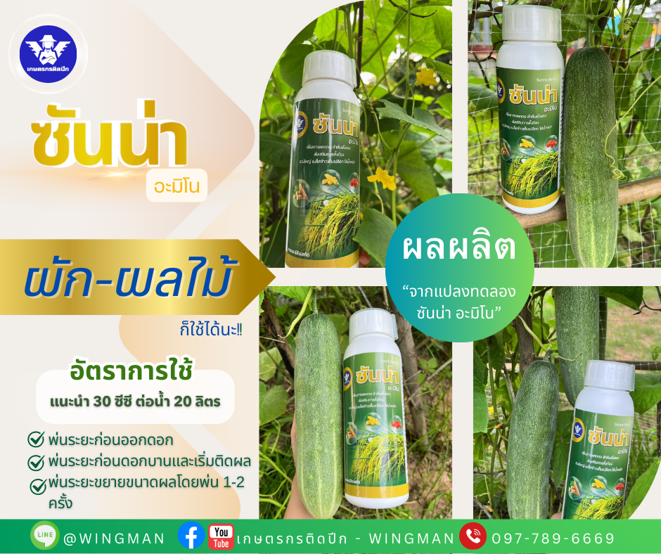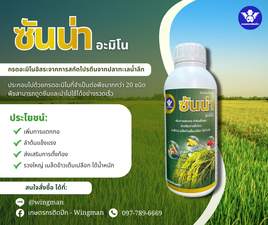 "ซันน่า อะมิโน" คือ กรดอะมิโนอิสระที่ได้จากการสกัดโปรตีนจากปลาทะเลน้ำลึก ประกอบไปด้วยกรดอะมิโนที่จำเป็นสำหรับพืชมากกว่า 20 ชนิด พืชสามารถดูดซึมและนำไปใช้ประโยชน์ได้อย่างรวดเร็ว