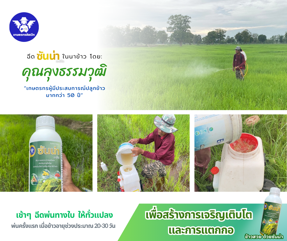 ส่งตรง “ผลงานซันน่า อะมิโน” จากไร่ทดลอง เราเนรมิตทุ่งนาข้าวเป็นไร่ทดลองเพื่อให้เห็นผลผลิตจริง ความแตกต่างระหว่าง “ไม่ใช้” กับ “ใช้” ซันน่า อะมิโน